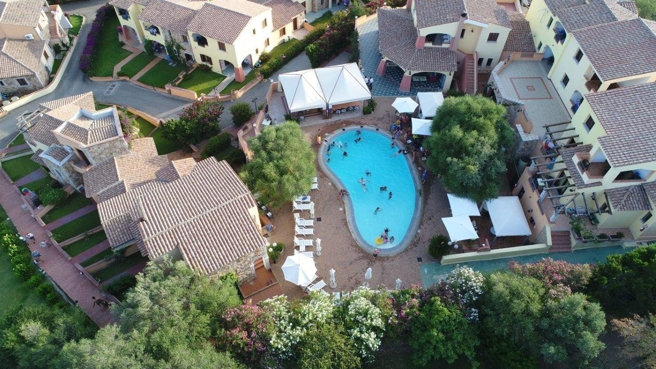 iolu e quindici minuti dalla rinomata San Teodoro. Il più vicino scalo aereo è l’aeroporto internazionale di Olbia–Costa Smeralda che, come il porto, dista solo venticinque chilometri e soli 30 minuti. L’architettura creativa riflette il fascino della Sardegna; il disegno elaborato ricorda un tipico villaggio di piccole dimensioni, con al centro un agorà, dove la sera si ritrovano gli abitanti per commentare la giornata trascorsa, e assaporare una bevanda fresca o un mirto ghiacciato. Il Residence comprende 35 appartamenti di varie tipologie: Gli appartamenti, in stile sardo, rifiniti esternamente con pietre e graniti, sono arredati con cura e dispongono di giardino e patio. Tra le case vacanza proposte, l’Hotel dispone di bilocali, capaci di ospitare un numero massimo di 2/3 persone, e trilocali ideali per ospitare fino a 4/5 persone. Gli appartamenti sono tutti dotati di: angolo cottura attrezzato, completo di forno, frigo e congelatore e stoviglie; ampio soggiorno con tavolo e sedie, con divano 1-2 posti letto; bagno con doccia; TV satellitare; ampio terrazzo o patio coperto, con tavolo e sedie per mangiare comodamente all’aperto; connessione Internet Wi-Fi (gratuito e disponibile in tutta la struttura); aria condizionata; giardino e patio arredato. Su prenotazione sono disponibili culla e seggiolone per i più piccoli (con supplemento aggiuntivo). Tutti gli appartamenti al piano terra si affacciano su un ampio giardino mediterraneo. Nel cuore del Residence si trova una piscina ovale con solarium, ombrelloni e sdraio e una magnifica vista sul mare, un bar con la possibilità di prenotare con un supplemento una ricca e sfiziosa colazione continentale, un ristorante pizzeria con vista sulla piscina, e una lavanderia gratuita in loco. Sono accettati anche gli amici a quattro zampe.